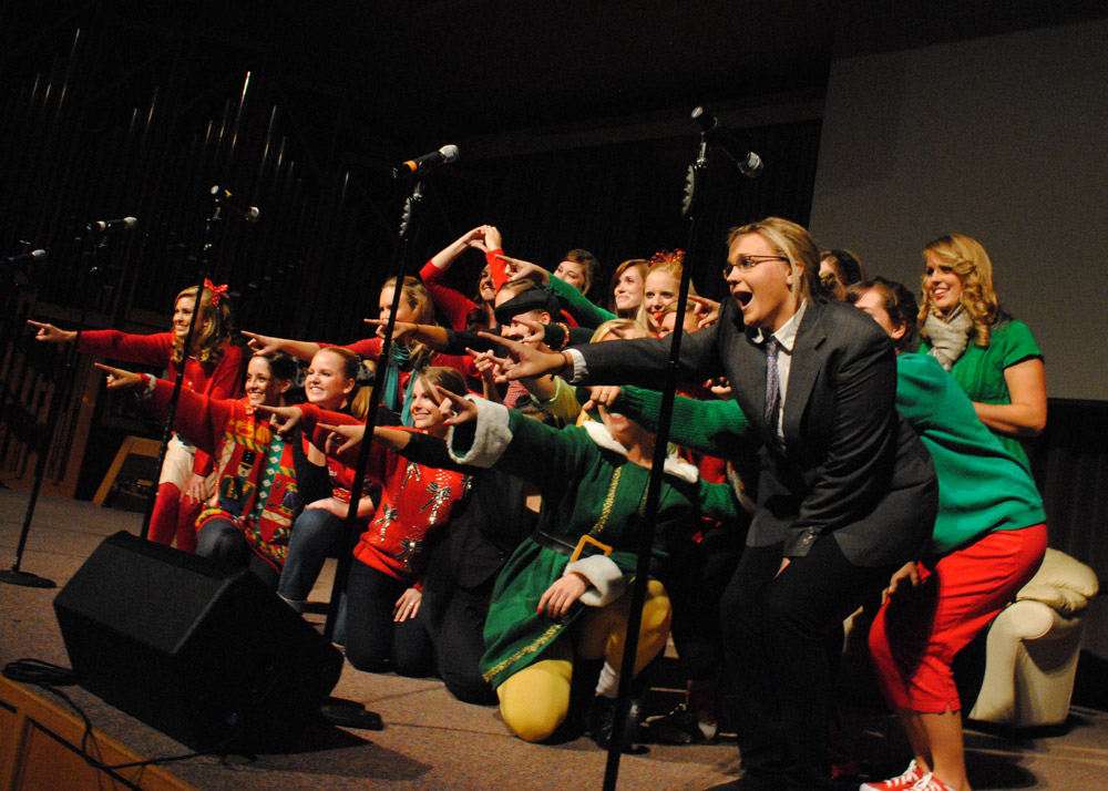 The Ladies of Chi Omega performed as a Large Group at All-Sing 2010, hosted by Sigma Alpha Iota. They presented songs and acting themed around the movie Elf. Their final song was “All I Want for Christmas is You.” | Photo by Victoria Stargel