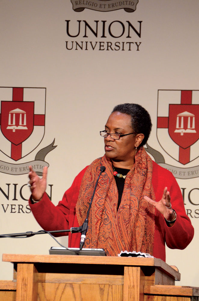 Renita J. Weems, vice president of academic affairs at American Baptist College, speaks at the Fourth annual Black History Month program in the Grant Center. | Photo by Deanna Santangelo